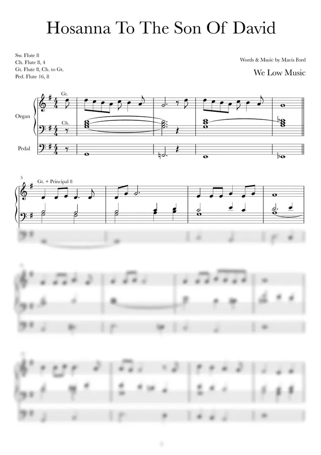 2단 오르간에서 연주가 가능하고, 연주 시간은 대략 4분 40초 정도입니다. 곡은 [ G장조, 전주 - 전체 2번 반복 - A장조 후렴 - 마지막 두 마디 두 번 반복 ] 순서로 진행됩니다.