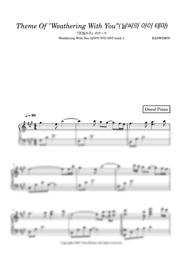 '날씨의 아이' OST 인기 트랙 5곡들을 피아노로 편곡, 연주해봤어요.