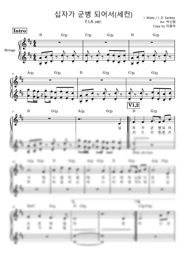 피아워십 - 십자가 군병 되어서 (세컨악보) (원곡 D Key) by 피클씨