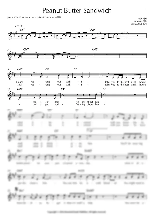 지소쿠리클럽 - Peanut Butter Sandwich (1단 멜로디 악보) by 보니랑0