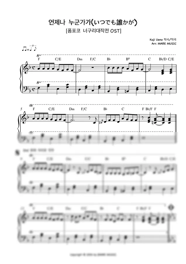 Koji Ueno - 언제나 누군가가(いつでも誰かが )(폼포코 너구리 대작전 OST) (쉬운버전) by MARE MUSIC