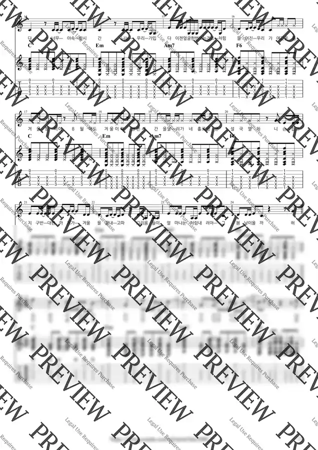 C Key / 7p / 2단(노래+반주) / 5선(Staff) / 타브(TAB) / 가사(Lyrics) / 코드(Chords)