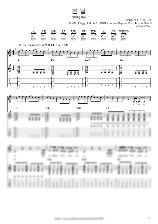 BTS(방탄소년단) - 봄날 (Spring Day) by GuitarTabs