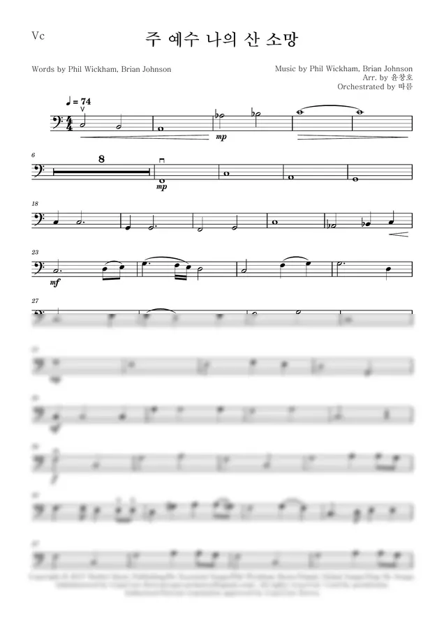 윤창호님 합창 편곡 버젼에 대한첼로 반주 악보입니다.