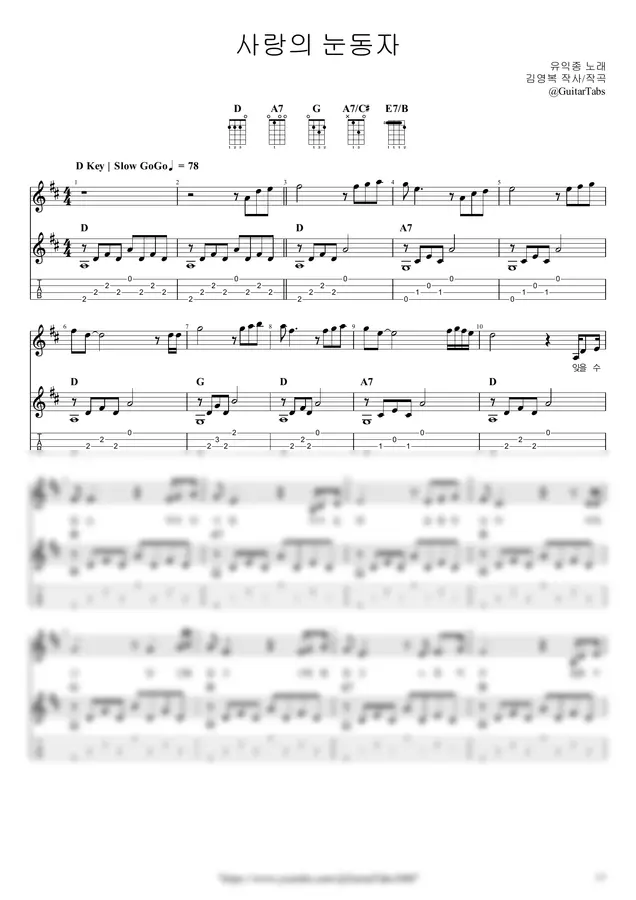 유익종 - 사랑의 눈동자 by GuitarTabs