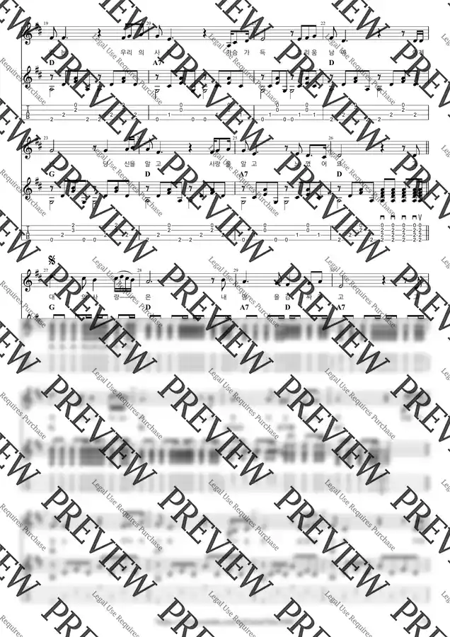 D Key / 3p / 2단(노래+반주) / 5선(Staff) / 타브(TAB) / 가사(Lyrics) / 코드(Chords)