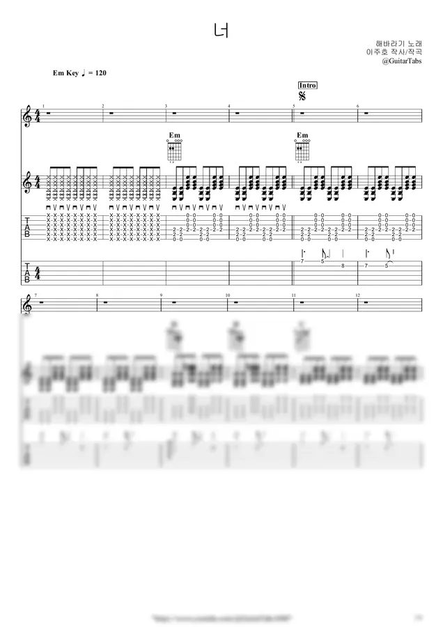 Em Key / 4p / 3단(노래+반주+솔로) / 5선(Staff) / 타브(TAB) / 가사(Lyrics) / 코드(Chords)
