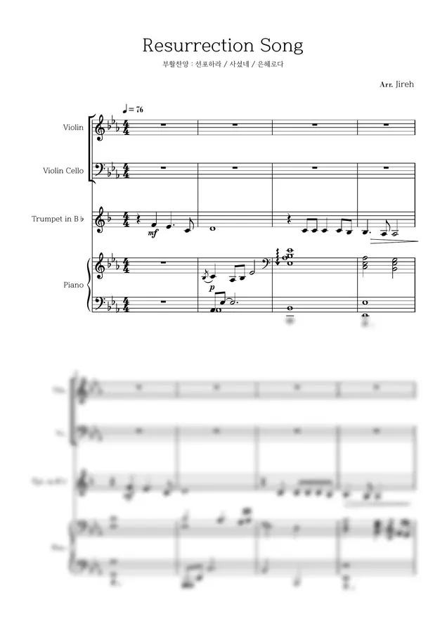 * 다른 편성, 길이 수정 , 난이도 조절 조옮김 등 문의주시는대로 수정편곡 가능 합니다