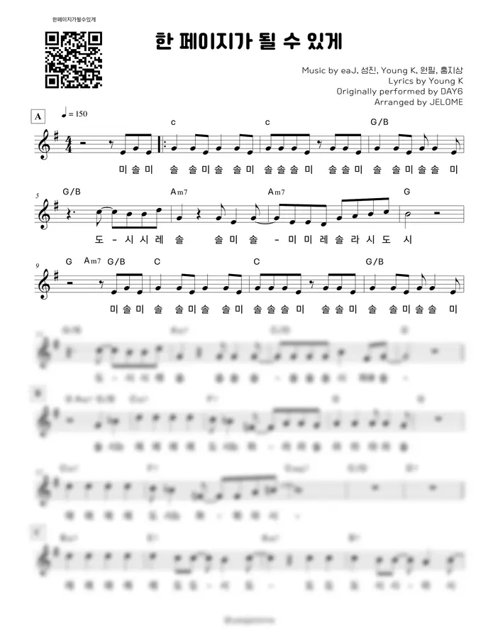 DAY6(데이식스) - 한 페이지가 될 수 있게 (G키 단선율) by 달코더쌤