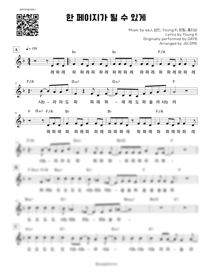 DAY6(데이식스) - 한 페이지가 될 수 있게 (F키 단선율) by 달코더쌤