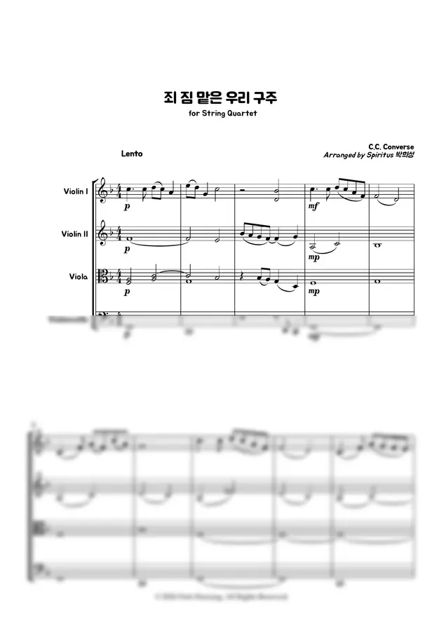 C.C. Converse - 죄짐 맡은 우리 구주 (찬송가 현악사중주, 현악4중주, 2바이올린/비올라/첼로)
