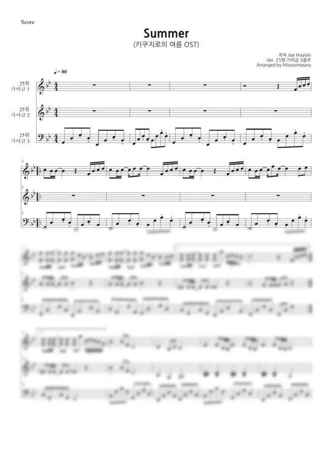 25현 가야금 3중주 편성으로 Bb key로 조옮김 하였습니다.