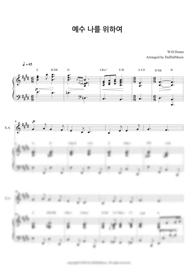찬송가 144장 <예수 나를 위하여>를 성가대 4부로 편곡 하였습니다.