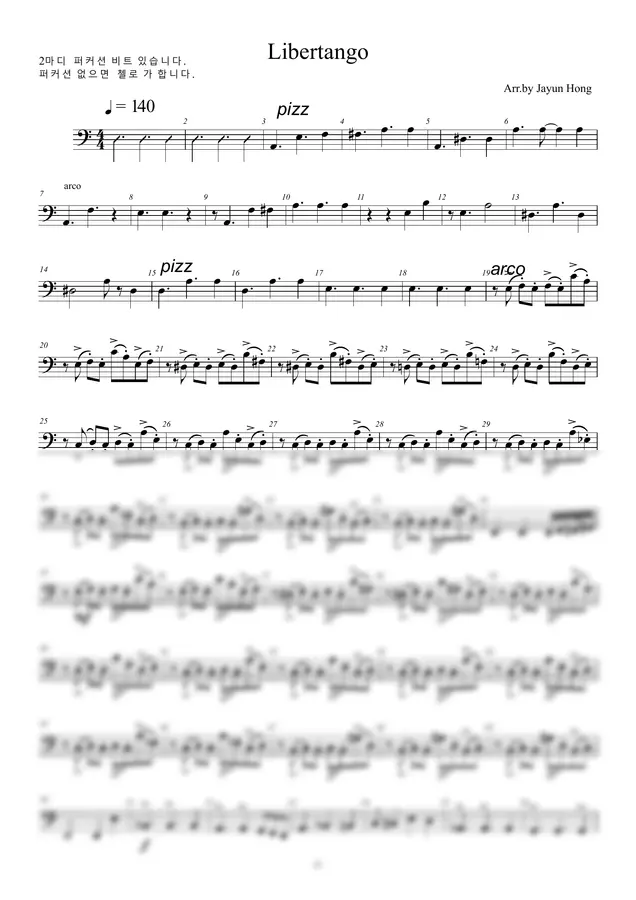 유튜브 채널에 업로드된 '리베르탱고(Libertango)' 퀸텟 편곡 버전의 풀스코어 및 파트보 악보입니다. 탱고 특유의 리듬감과 각 파트의 매력을 극대화할 수 있도록 밸런스에 신경 써서 편곡했습니다. 앙상블 연주회나 실내악 레퍼토리로 강력히 추천해 드립니다.