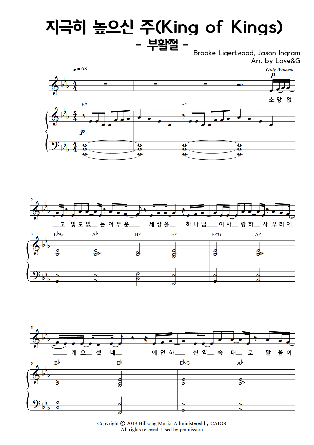 Hillsong Worship - 지극히 높으신 주(King of Kings)(부활절) (4부 합창 SATB) 입니다.