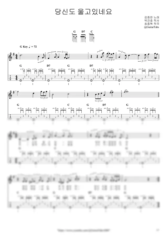 G Key / 3p / 2단(노래+반주) / 5선(Staff) / 타브(TAB) / 가사(Lyrics) / 코드(Chords)