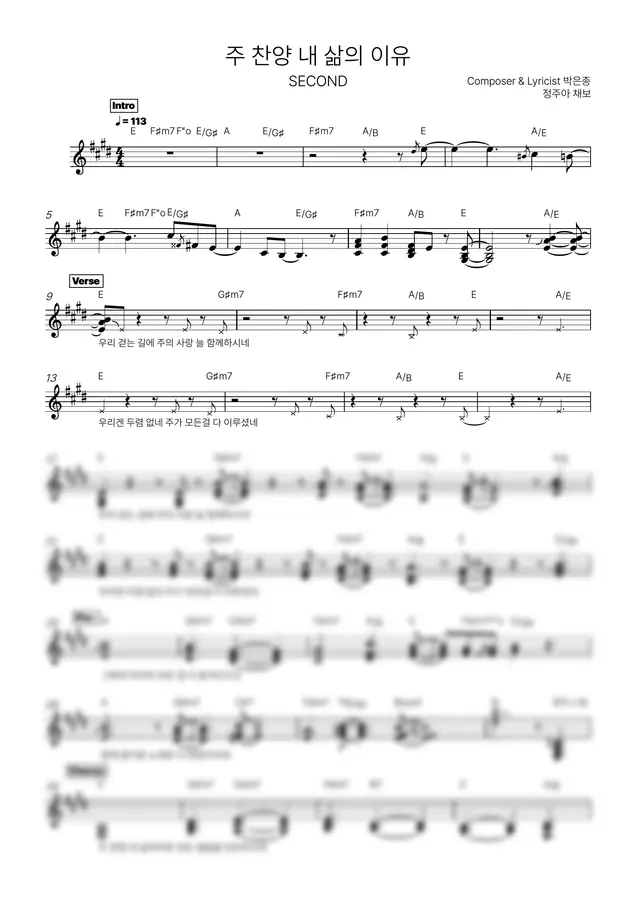 위클레시아 주 찬양 내 삶의 이유 세컨 E key 악보입니다.