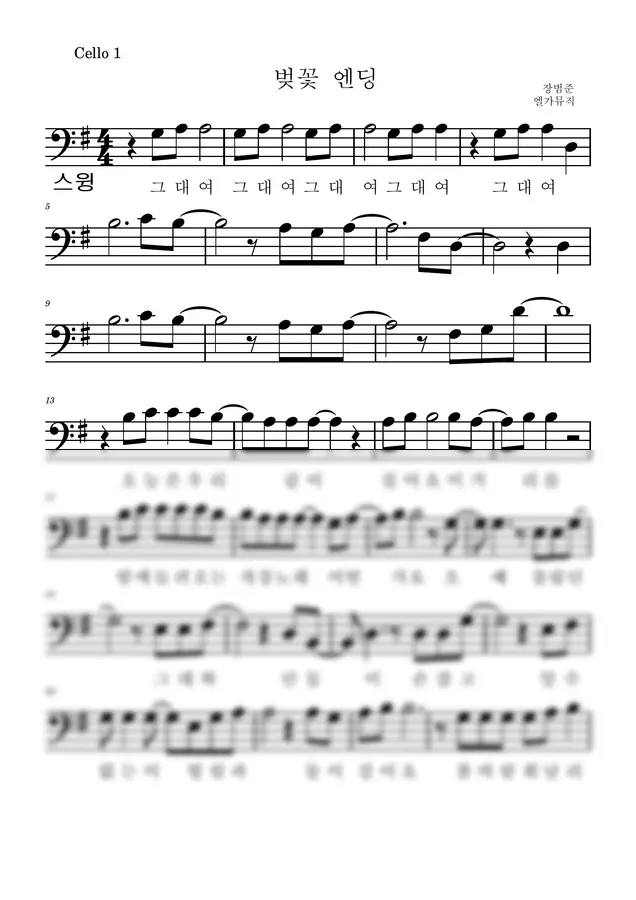 장범준 - 벚꽃 엔딩 첼로 트리오(첼로 1 파트) by 엘가뮤직