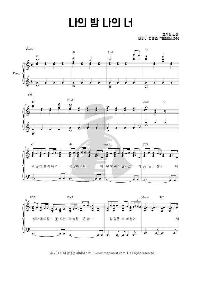 발라드하면 성시경, 성시경 하면 발라드! 오랜만에 성발라의 신곡이 나왔는데요, '나의 밤 나의 너'라는 제목만으로도 특유의 꿀같은 목소리가 들려오는 것 같네요. 이번 곡도 역시 마피아 분들에게 가장 먼저, 멋지게 드리기 위해 마피아가 열심히 제작하였답니다! 즐겁게 연주해주세요 :)