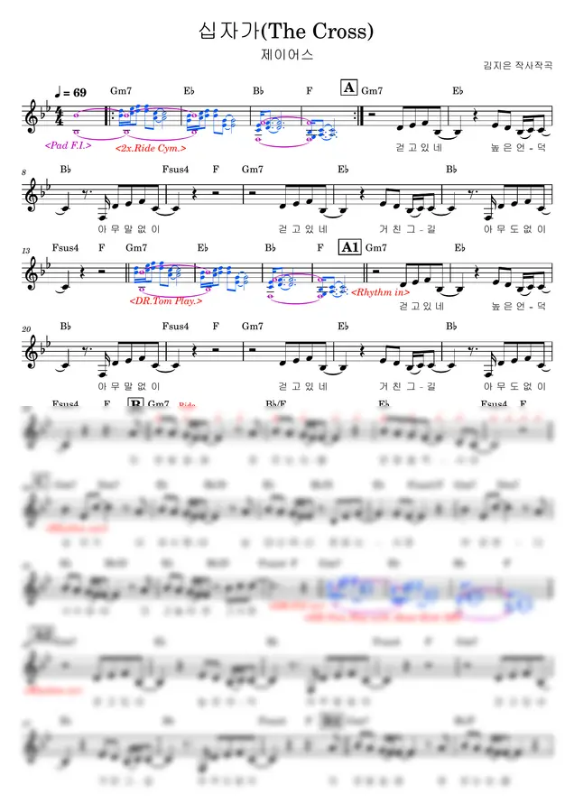 제이어스 - 십자가(The Cross) (리드시트 전간후화음) by 동네음악실0