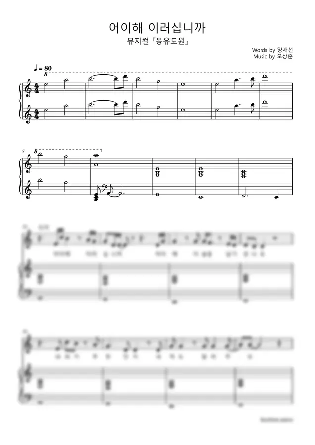 뮤지컬 『몽유도원』 - 어이해 이러십니까, 이충주 배우 ver. (3단, 반주보) by Soultree piano