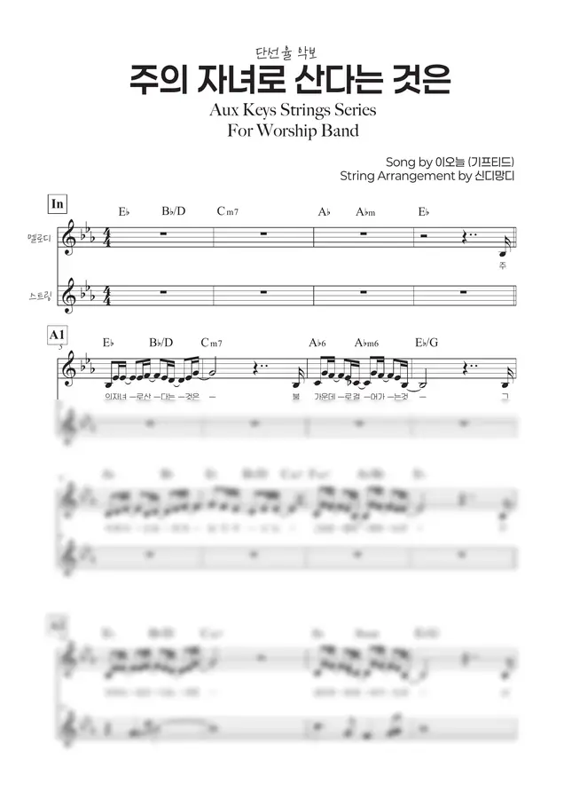 이오늘 (기프티드) - 주의 자녀로 산다는 것은 (단선율 스트링 악보) by 신디망디