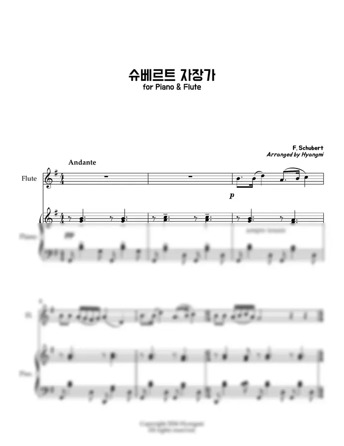 슈베르트의 자장가를 플루트와 피아노로 쓴 악보입니다. 즐겁게 연주하세요~
