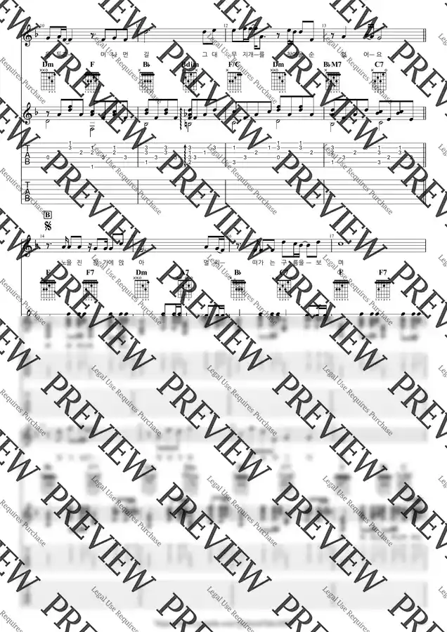 프리미엄 악보는 오선, 타브, 코드, 운지 등 생략된 기보없이 모든 정보를 다 보여주며, 코드는 악보내에 배치하고 다이어그램의 크기도 키워 직관성을 높이고, 보표단의 간격은 넓히는 등 연주자의 가시성과 편리성을 최대한 높힌 고급 악보입니다.