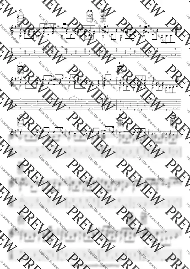 Em Key / 3p / 1단(솔로) / 5선(Staff) / 타브(TAB) / 운지(Fingering) / 코드(Chords)