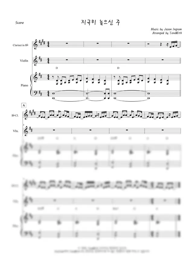 힐송 워십 - 지극히 높으신 주 King of Kings (Pf,Vn,Cl) by ToneWith 톤위드