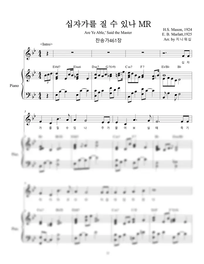 십자가를 질 수 있나 MR G키 악보 바로가기 https://www.mapianist.com/sheet/111616