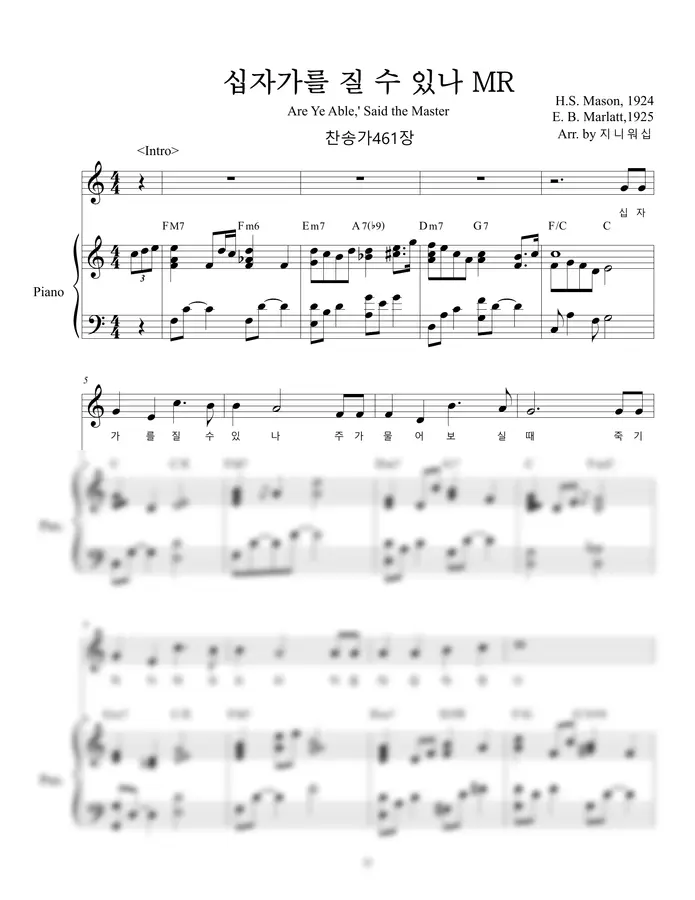 십자가를 질 수 있나 MR G키 악보 바로가기 https://www.mapianist.com/sheet/111616