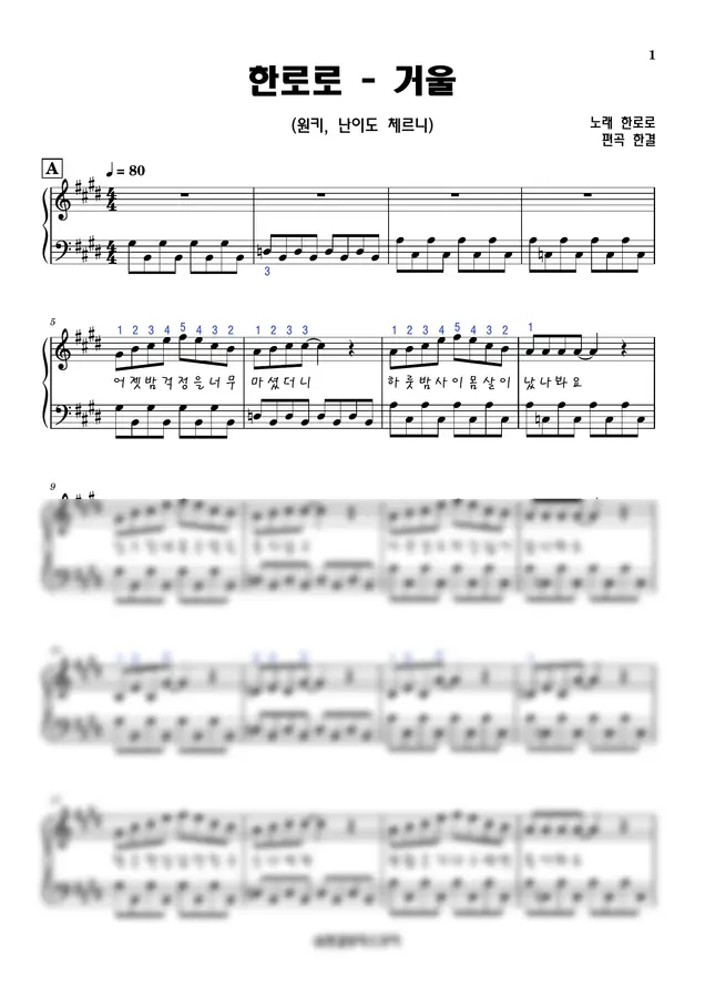 악보 > 한로로 - 거울(원곡 길이) (원키, 쉬운 악보) | 한결
