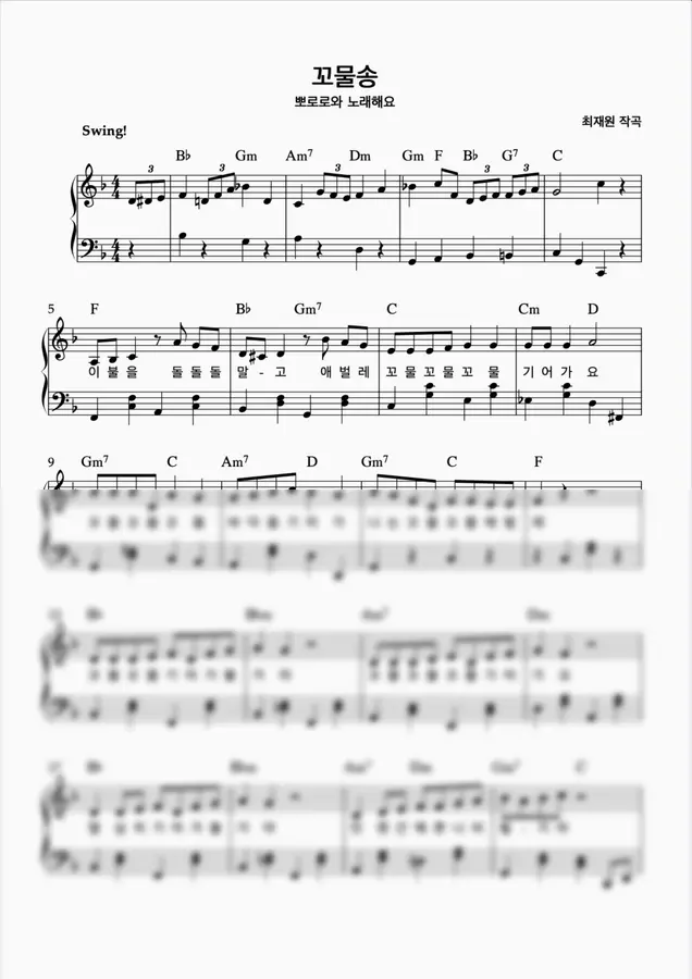 뽀로로와 노래해요 - 꼬물송 (코드 가사포함) by 구름사다리뮤직
