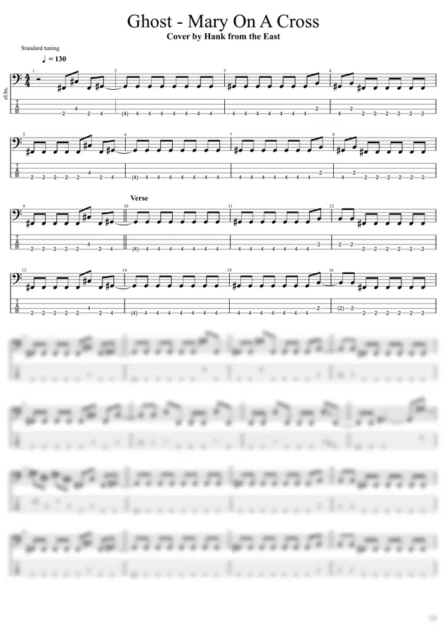 고스트 - Mary On A Cross (bass tabs 4-string) by Hank from the East
