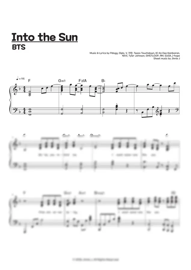 방탄소년단 "Into the Sun" 악보입니다.
