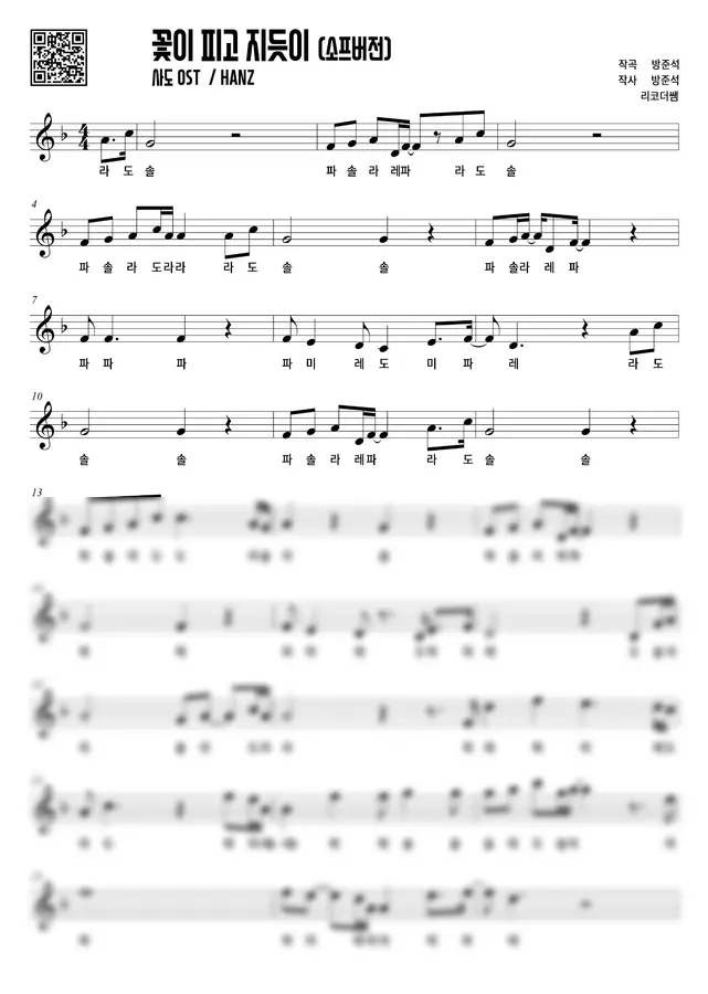 사도 OST - 꽃이 피고 지듯이 (계이름) by 리코더쌤