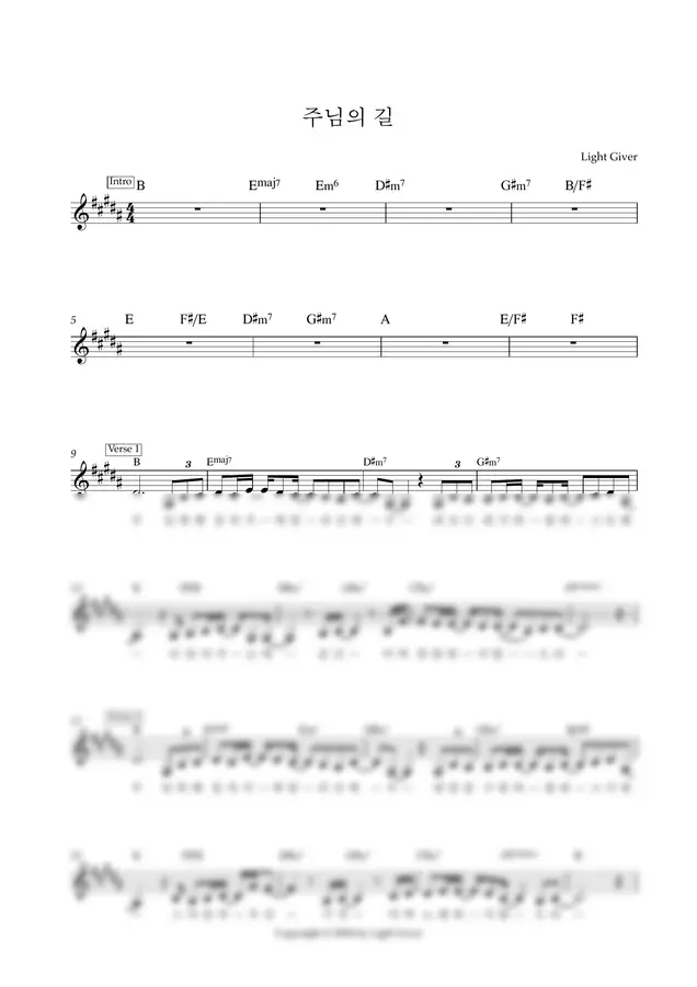 지난 22년 9월 20일에 발매되었던 '주님의 길(with 김미소)' 앨범의 멜로디 악보입니다.