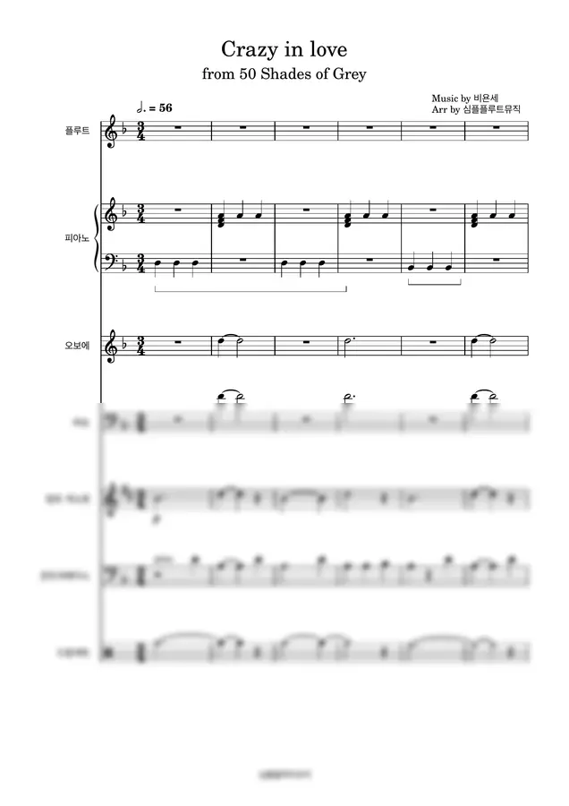 그레이의 50가지 그림자 OST - Crazy in love 크레이지 인 러브-[플루트][목관 앙상블][재즈스타일]