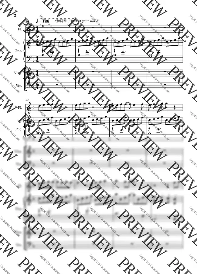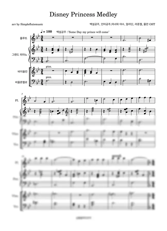 디즈니 OST - 디즈니 프린세스 메들리-[플루트][바이올린][첼로][쉬운 앙상블 악보]