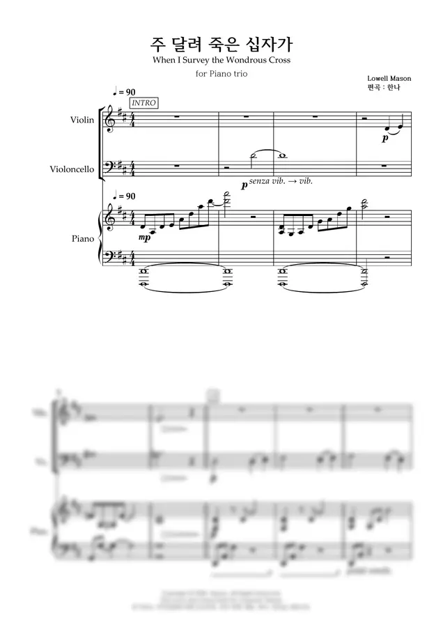 Lowell Mason - 고난주간 연주곡 - 주 달려 죽은 십자가(피아노 트리오) by 한나
