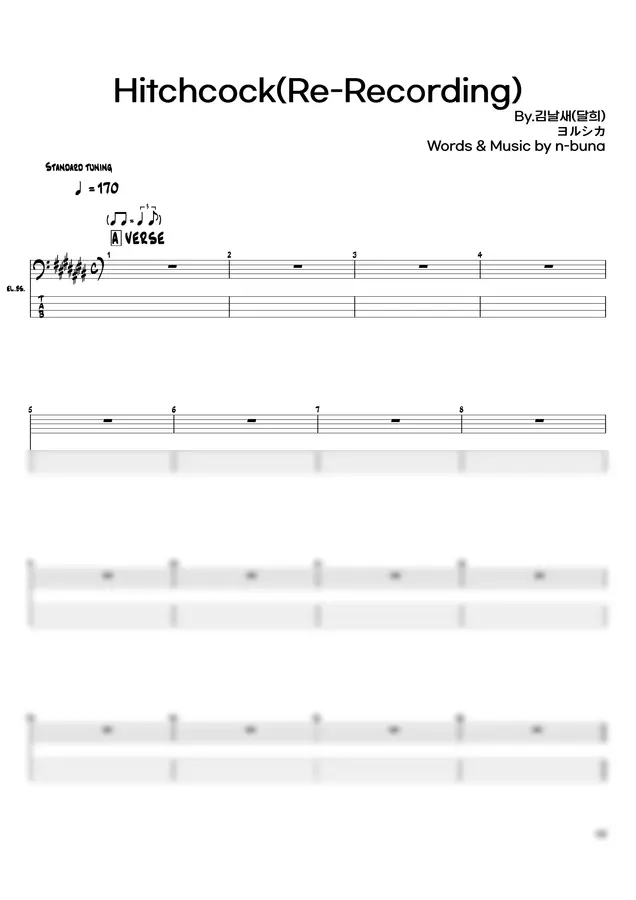안녕하세요, 요루시카 (ヨルシカ) - Hitchcock 의 베이스 기타 TAB 악보 영상입니다.