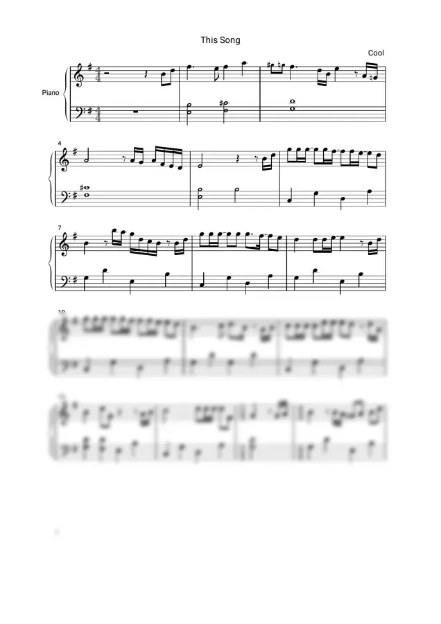 쿨 - This Song (쉬운 리듬의 악보) by 피아노와 친구되기