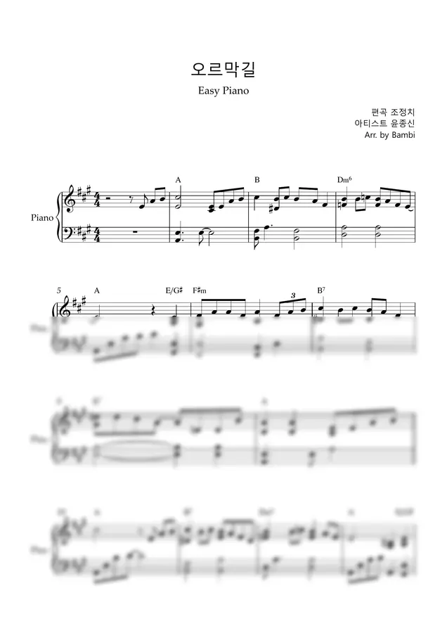 윤종신 - 오르막길 (Easy Piano) by Bambi
