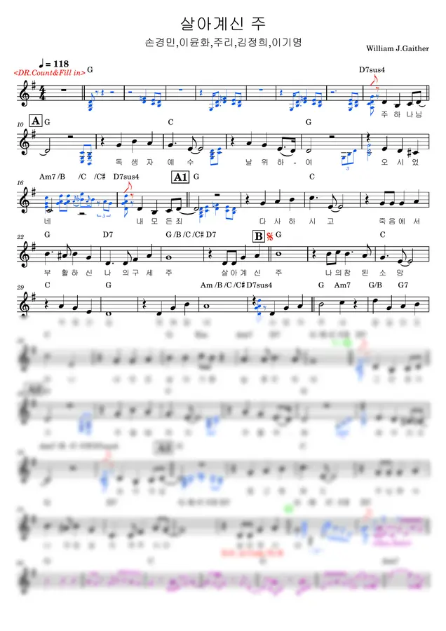 William J.Gaither - 살아계신 주+영광 영광 할렐루야(찬171장) (리드시트 전간주) by 동네음악실0