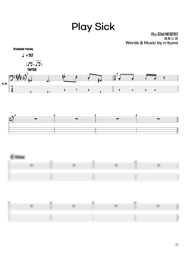 안녕하세요, 요루시카 (ヨルシカ) - プレイシック (Play Sick / 플레이 식) 베이스 기타 TAB 악보 영상입니다.