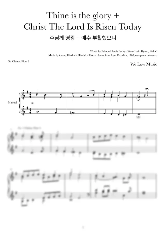 곡은 G장조, [ 주님께 영광 전주 - 1절 - 2절 중간부분부터 끝까지 - 예수 부활했으니 1절] 순서로 진행됩니다.
