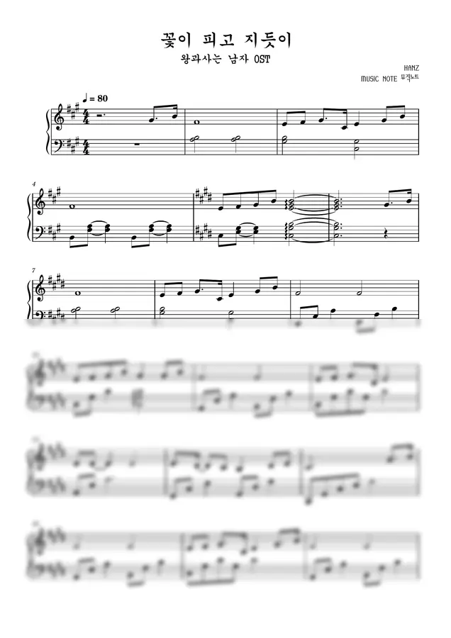 악보 > 왕과 사는 남자 OST - 꽃이 피고 지듯이 (쉬운악보,계이름) | 뮤직노트