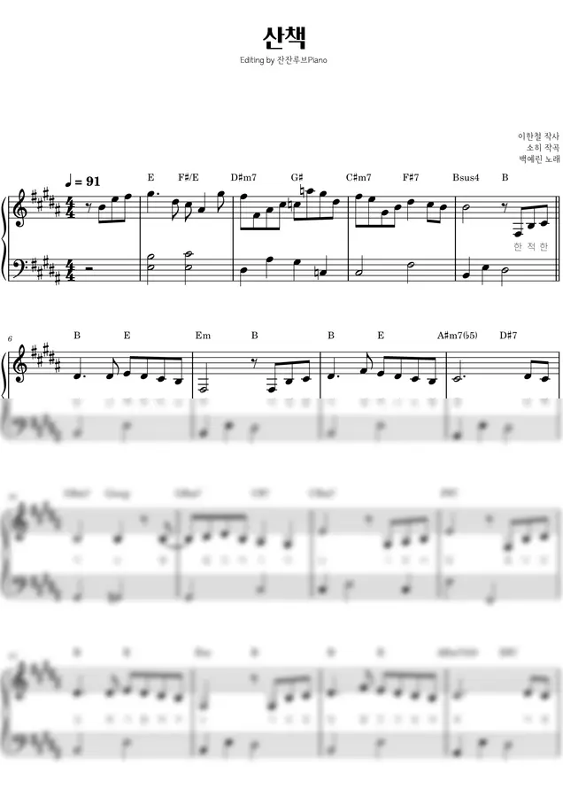 이번 악보는 [백예린 님의 ‘산책’] 중급 버전 입니다 🎹