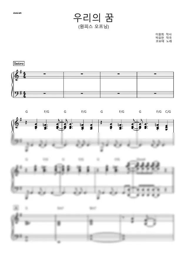 원피스 오프닝 곡 코요태 - 우리의 꿈 (피아노 반주) by 이니어 inni:er